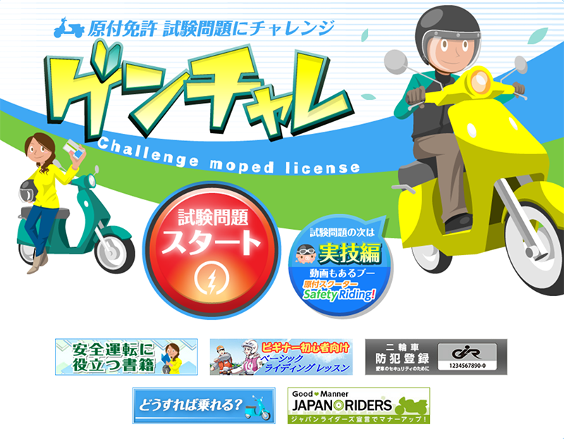 原付免許の試験問題に気軽にチャレンジできるサイト『ゲンチャレ』を紹介します。